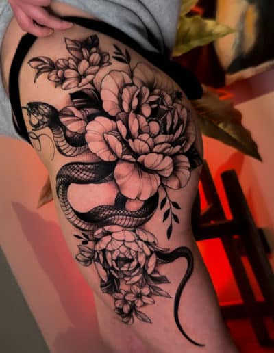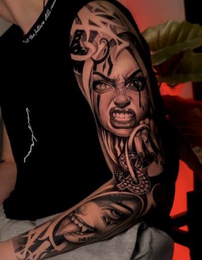 Obwohl sie zunächst eine Laufbahn im Sport- und Fitnessbereich einschlug, merkte sie schnell, dass ihr die kreative Arbeit mit der Haut viel mehr Freude bereitete. Bereits während dieser Zeit begann sie, sich selbst und Freunde zu tätowieren, was ihre Leidenschaft nur weiter entfachte. Entschlossen, diese Leidenschaft professionell zu verfolgen, bewarb sie sich schließlich bei Pryme Ink, wo sie nun ihre kreative Energie und ihr handwerkliches Können voll entfalten kann. Hier lebt sie ihre Leidenschaft für Kunst und Individualität aus – und das spürt man in jeder ihrer Arbeiten.